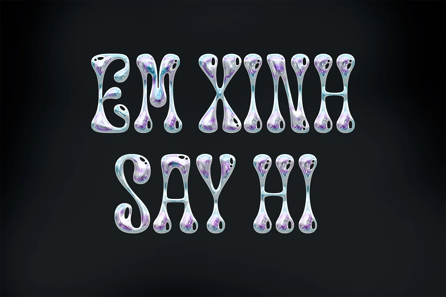 Đây là kiểu chữ dành cho những nhà sáng tạo muốn thổi làn gió lấp lánh, ảo diệu vào tác phẩm của mình — nơi từng con chữ như đang tan chảy dưới ánh sáng neon.