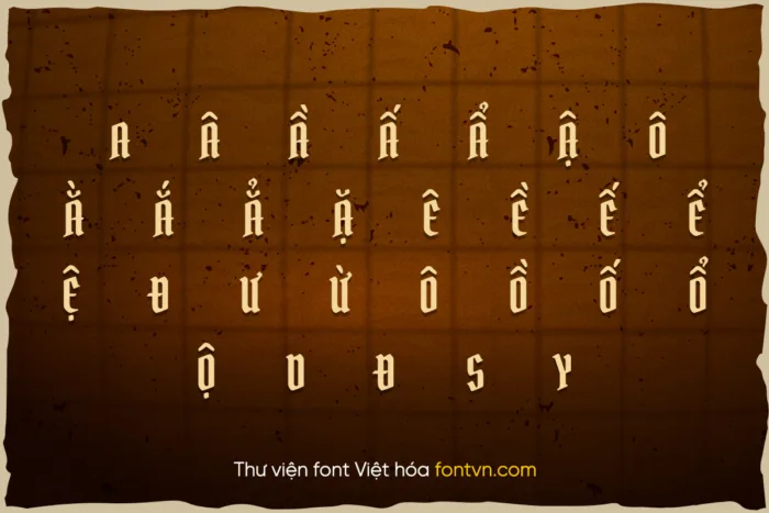 Font đặc biệt phù hợp với tiêu đề, logo, bìa sách, poster phim giả tưởng hoặc các sản phẩm sáng tạo mang chất sử thi, phiêu lưu, Gothic. Phiên bản Việt hóa được bổ sung đầy đủ dấu tiếng Việt và tinh chỉnh các ký tự để hài hòa với nguyên bản, giúp font phát huy tối đa tính ứng dụng trong thiết kế Việt.